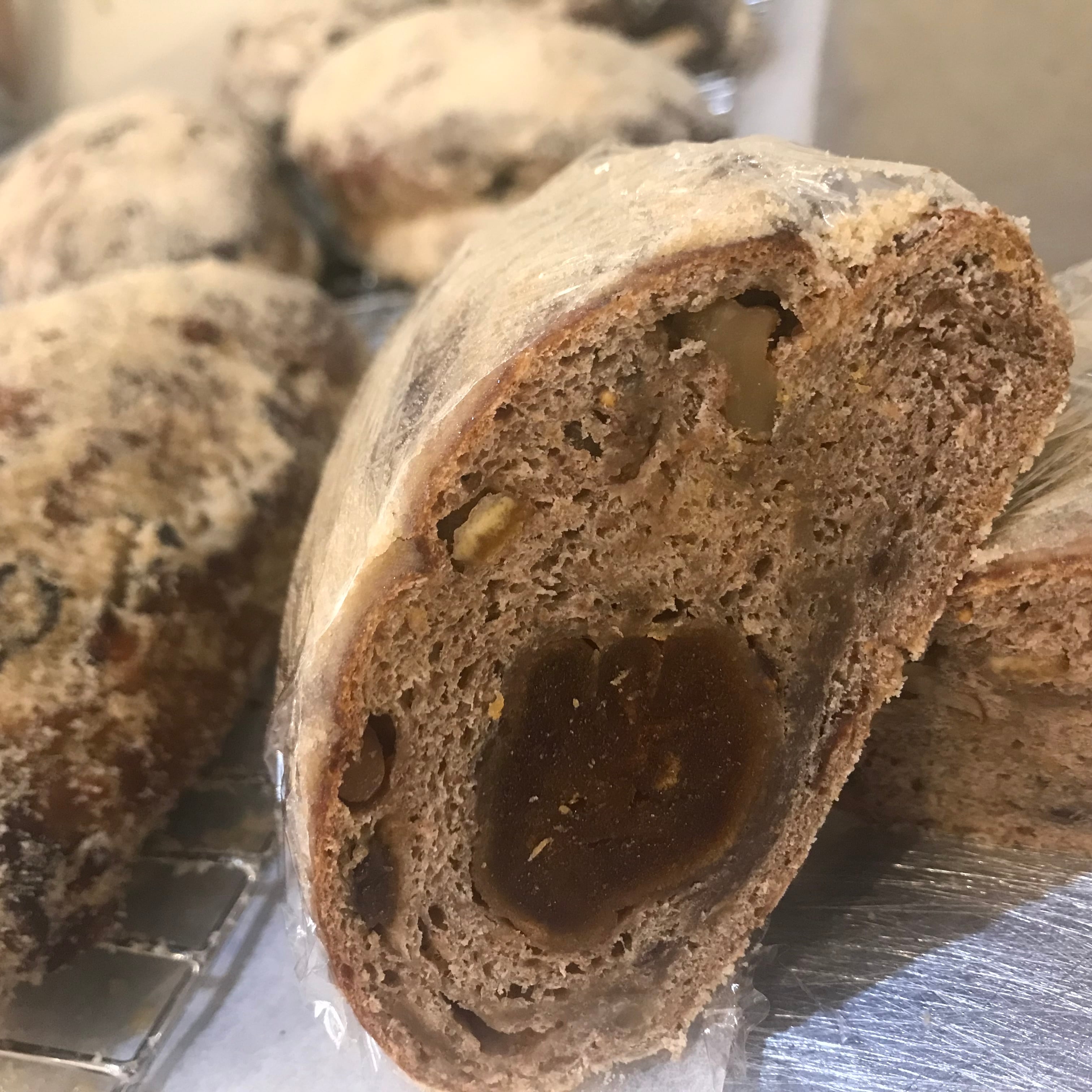 ラム酒レーズン、オレンジピール、イチヂク、干し柿(天候不良などにより干し柿が入らない場合は干しあんずに変わります)